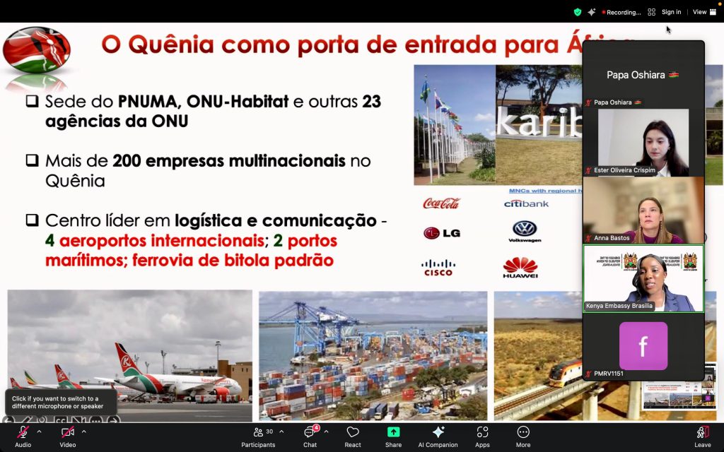 A notable highlight of the session was a compelling presentation by Ms. Beatrice Kinyua, Commercial Attaché at the Kenya Embassy in Brasília, who highlighted Kenya’s substantial investment potential as a strategic entry point into the East African region.